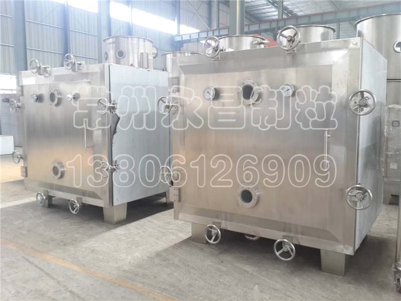 方形真空干燥是将被干燥物料处于真空条件下进行加热干燥。它利用真空泵进行抽气抽湿,使工作室处于真空状态,物料的干燥速率大大加快,同时也节省了能源。方形真空干燥设备分为静态干燥和动态干燥机。YZG圆筒型、FZG方形真空干燥机属于静态式真空干燥器,SZG双锥回转真空干燥机属于动态干燥机。