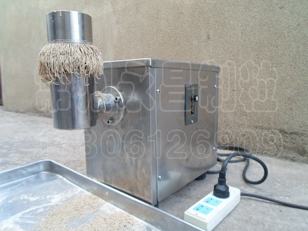1、本机是用S型碾刀,通过不锈钢筛筒的筛孔,把物料挤出颗粒的设备。在化学物品方面用于把混合的(湿)粉未碾成颗粒, 在制药和食品工业上用作(湿)粉末混合物和麦芽乳品等的混合原料制成型的颗粒,用作冲剂,鸡精,海鲜精等。只需要20-30克左右的粉未就可以做试验。连续加工可以达1-10公斤/小时,颗粒直径为0.8,1.0,1.2,1.5,1.8,2.0,2.5,3.0(mm) 长度一般在3-5(mm)。