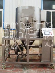 喷雾干燥机为连续式常压干燥器的一种。用特殊设备将液料喷成雾状,使其与热空气接触而被干燥。用于干燥有些热敏性的液体、悬浮液和粘滞液体,如牛奶、蛋、单宁和药物等。也用于干燥燃料、中间体、肥皂粉和无机盐等。